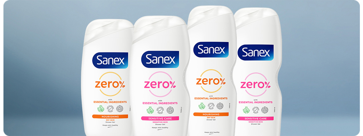 The new Sanex Zero% formula does not contain anything not strictly necessary. Developed with skin experts and dermatologically tested, new Sanex Zero% formula is streamlined to 10 ingredients that we consider essential to deliver the maximum efficacy in a gentle way, working together with your skin to promote its natural functions.